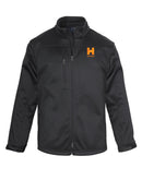 Outer: 100% Bonded Polyester. Lining: Polyester knit fabric bonded with Micro Fleece. 2 Way front zip with movable sliders. Wind flap chin guard and stand up collar. Outer right chest zippered vertical pocket with metal puller and audio port access. Adjustable rubber cuff closures. 2 Concealed zippered front pockets with metal pullers.